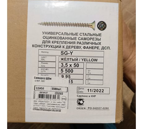 Вопросы и ответы о саморезе Tech-Krep ШУж 3,5x50 5500 шт. с потайной головкой 125283