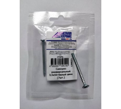 Саморез универсальный МЕТАЛЛСЕРВИС 3,5x50 мм, белый цинк, 7 шт. МС 1268271