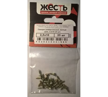 Саморез универсальный ЖЕСТЬ желтый цинк, 2,5x10 мм, 25 шт., европодвес УТ-0000589120 ₽