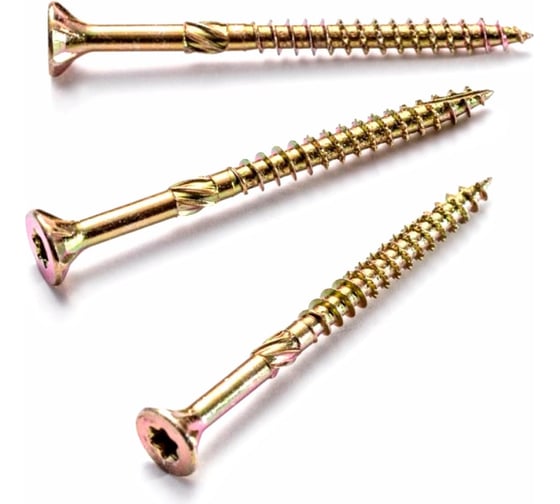 - Геометрия резьбы, специальное покрытие и технологичная фреза направляют саморез вдоль волокон древесины и снижают сопротивление при закручивании, обеспечивая минимальные усилия и долгую жизнь шуруповерта