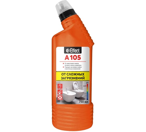 Санитарно-гигиеническое средство для сложных загрязнений EFFECT АЛЬФА 105 750 мл 26220 предназначено для чистки и ухода за различными поверхностями.