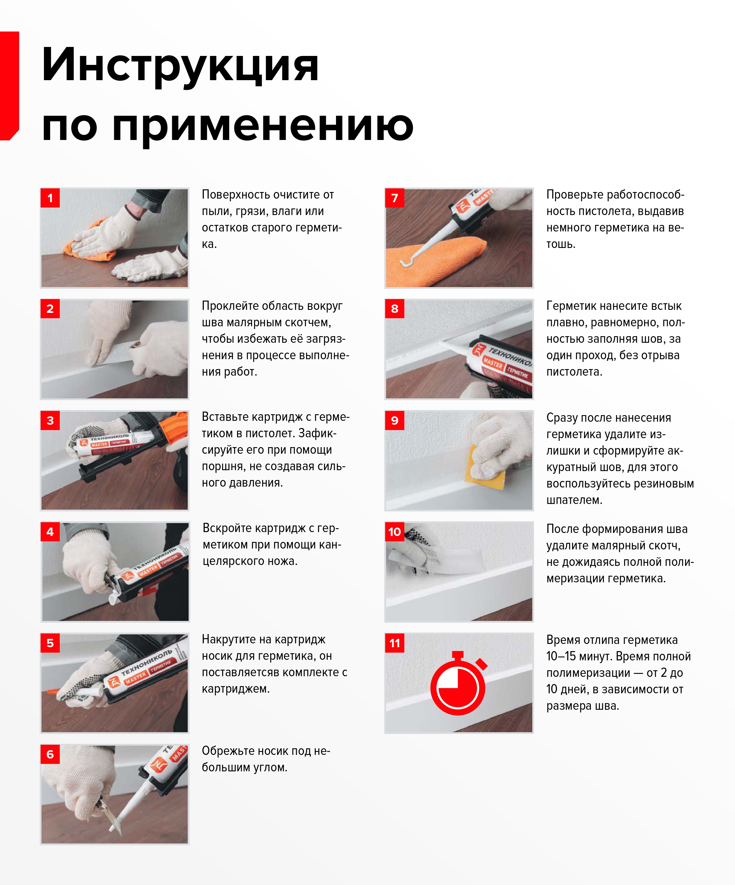Санитарный силиконовый герметик Технониколь белый, 280 мл TN667564 при взаимодействии с влагой воздуха формируется в прочную эластичную резину. Стоек к ультрафиолету и атмосферным воздействиям.