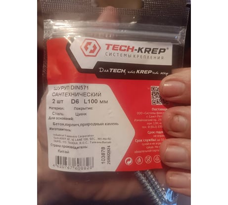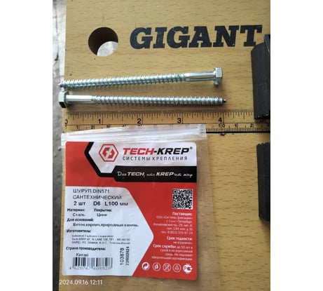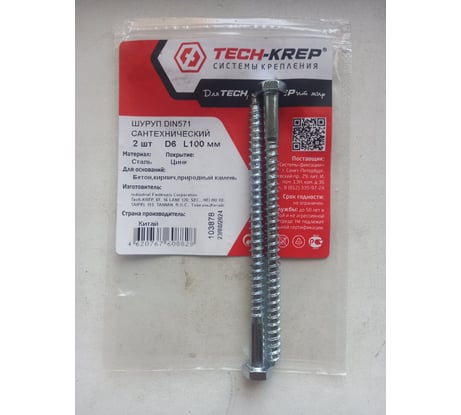 Отзывы о сантехническом болте DIN 571 оцинкованном 6х100, 2шт - пакете Tech-Krep/Zitar 103878