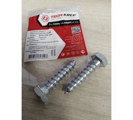 Отзывы о сантехническом болте Tech-Krep/Zitar DIN 571 оцинкованном 10х50 2 шт - пакете 102593