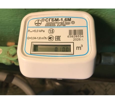 Счетчик газа бытовой малогабаритный СГБМ-1.6 Бетар (г. Чистополь) с накидной гайкой предназначен для измерения объема газа при учете потребления газа индивидуальными потребителями в жилищно-коммунальном и бытовом хозяйстве.