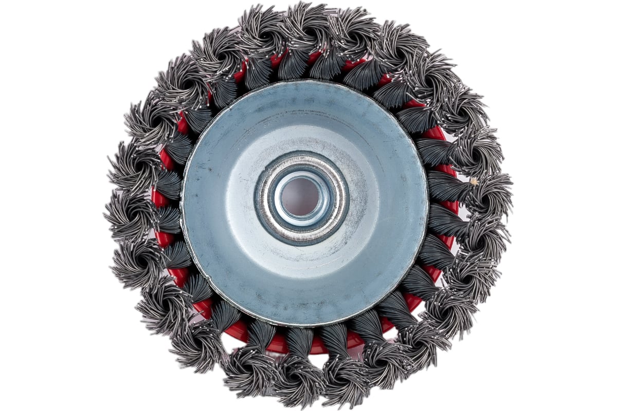 Металлическая щетка-чашка 125 мм с посадкой М14 для УШМ, Samtools-идеально подходит для зачистки металлических деталей и изделий от следов сварки, шлифовки сварочных швов, а также для очистки поверхностей от грязи, ржавчины и краски. Благодаря увеличенному диаметру обеспечивается высокая скорость обработки. Прочная стальная проволока с латунным покрытием гарантирует долговечность и устойчивость к износу и коррозии. Легко и надежно крепится на УШМ.