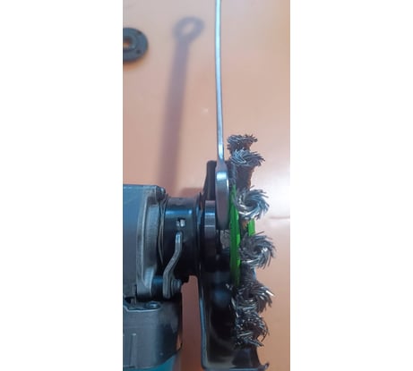 Длина пучков 28 мм, то есть 2,5 см, спокойно уведут в работу. Мне нужна гайка для фиксации диска. Диск хорошо отбалансирован и на оборотах 11500-2800 вибрация чувствуется слабо.