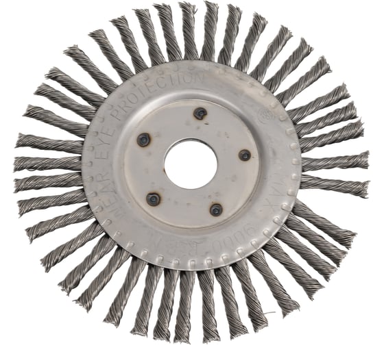 Щетка дисковая для тяжелых зачистных работ по корневым и заполняющим сварным швам из черной стали. Выполняет агрессивную и эффективную зачистку благодаря скрученной в жесткие жгуты стальной проволоки.