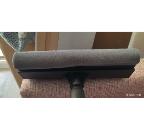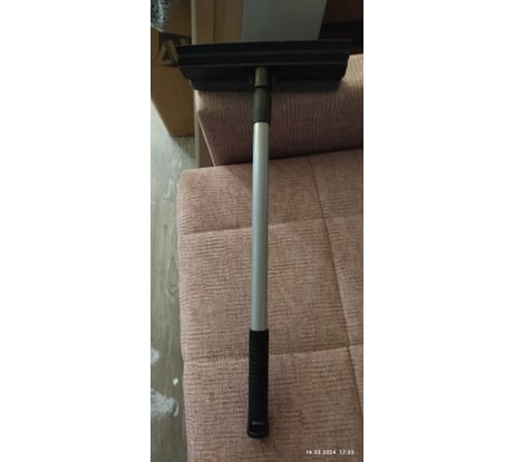 Крепкая НЕ РАЗДВИЖНАЯ ручка, все эти телескопы ломаются на раз-два и сделаны чуть ли не из фольги, специально ходил по хозяйственным для изучения крепости ручек. Поролон не выскакивает, резинка-сгон держится на саморезах и крепка. По длине и ширине основания комфортна, представлял, как придется ей мыть окна и сколько надо будет тянуться, так что по ощущениям всё в норме.