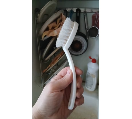 Щётка удобная для мытья рук. Для посуды подходит если что-то сильно прилипло или пригорело к посуде.
