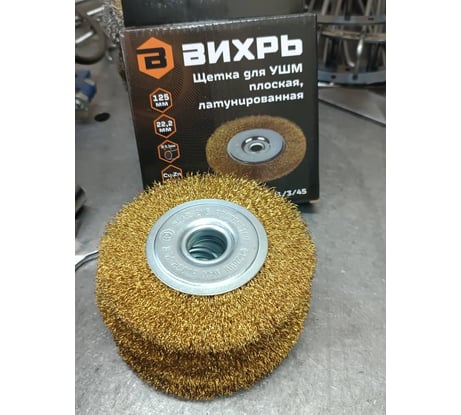 Щётка для УШМ Вихрь плоская, латунированная, 125 мм - это незаменимый инструмент для обработки и подготовки поверхностей перед покраской или покрытием.