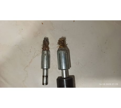 Для зачистки металла не подходит. До тестирования этой щетки перепробовал 5 разных других в целях очистки автомобильного аллюминиевого диска, эта щётка самый худший результат, разлетелась за 30 секунд, остатки проволоки скрутились по кругу. Вообще не представляю, для чего этот инструмент можно использовать. Если на крайне низких оборотах так она вообще чистить не будет. Для сравнения на фото другая щётка , у нее после 30 минут работы проволока не закрутилась по кругу, сохранив абразивные свойства, что позволяет ее использовать, хоть и малопроизводительно