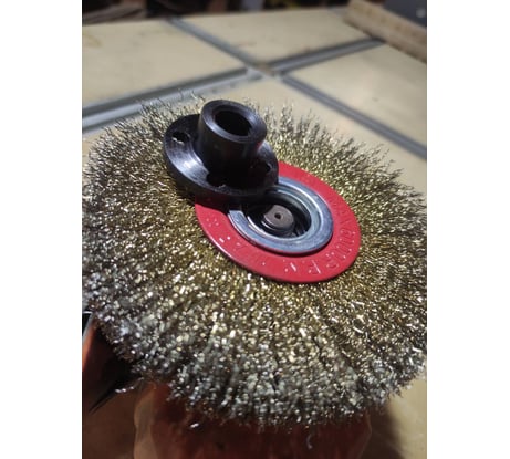 Как собственно товару - пять звёзд. Как товару под мою задачу - всё-таки четыре. Иииии пока болгарка остывает в холодильнике (да-да, приходится иногда использовать такой способ спасения инструмента))), поделюсь деталями. Мне нужна была щётка для браширования лиственницы. По ощущениям, это должно было быть нечто очень мягкое, хотя и стальное. Как оценить мягкость железной щетки объективно?.. С китайцами - никак! Пришлось заказать штук десять щеток в магазин (какое ж счастье, что ВИ ещё не берет плату за возвратную логистику!.. тьфу-тьфу-тьфу...) и изучить китайских близнецов со всем пристрастием. В итоге, было установлено, что щетки с проволокой 0.2 ничуть не мягче, чем 0.3 (ну, это ещё если верить их, китайским, микрометрам))). А закономерно мягче те, где диаметр и ширина щетины больше, а шпиндель меньше. Неочевидный параметр - ширина щетины. Но чем она шире, тем пятно контакта больше, а давление, соответственно, меньше. Что в итоге - в итоге эта щётка оказалась самой мягкой из всех близнецов - у нее наибольшая лохматость в пятне контакта, а шпиндель на добрых 20 мм меньше аналогов. Удивительным (!!!) бонусом оказалось наличие в коробке удлиненной план-шайбы для посадки щетки на болгарку: а я-то всё ломал голову, как такую толщину зажать... Ни у одной другой щетки такого бонуса не было. Так что в итоге за исполнение собственно товара - твердая пятерка. А теперь почему четверка за применение к моей задаче. Всё-таки, она слишком твердая для браширования лиственницы. Если ставить минимальные обороты (болгарка AEG 125, обороты "A"), и давить усилием в 1.5-2 веса болгарки (ну то есть, в общей сумме как раз килограмма 1.5-2), то щётка отлично чешет. Если хоть чуть больше надавить - уже видимо царапает твердые слои древесины. Так что именно для браширования щётка всё-таки жестковата. Ну и, пожалуй, косвенным признаком чрезмерной жёсткости щетки является и то, что болгарка отдыхает в холодильнике: уже на 7-ой дощечке 700х60 она стала чересчур горячей. Для остужения нужны бы обороты, а добавить их невозможно - щётка начинает слизывать то, что слизывать не должна.