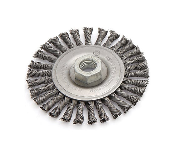 Щётка для УШМ кручёная плоская Дело Техники 275100 применяется при шлифовании, удалении коррозии и краски, снятии заусенцев. Витая проволока дает большую жесткость и упругость рабочей поверхности, что гарантирует высокое качество зачистки. Подходит для грубой первичной обработки.
