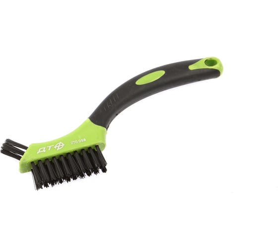 Щётка-мини с прорезиненной рукояткой Дело Техники 270058 используется для зачистки различных поверхностей от старого лакокрасочного покрытия, ржавчины, окислов или грязи.
