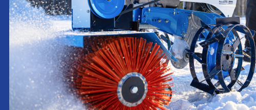 Управление щеткой производится посредством рукоятки и рычага включения/отключения сцепления клиноременной передачи, устанавливаемыми на руле мотоблока. Концентрация рычагов в одном месте делает управление изделием более удобным и легким.