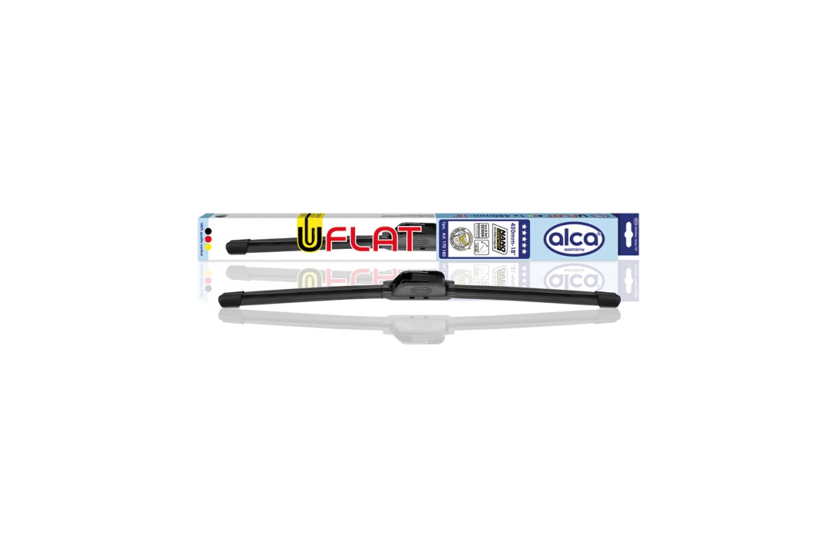 Щётка с/о бескаркасная u-flat 18''/450 мм Alca 170180 предназначена только для автомобилей с типом крепления "крючок". Данная щётка защищена от контрафакта посредством оригинальной выштамповки наименования бренда производителем на её лезвии.