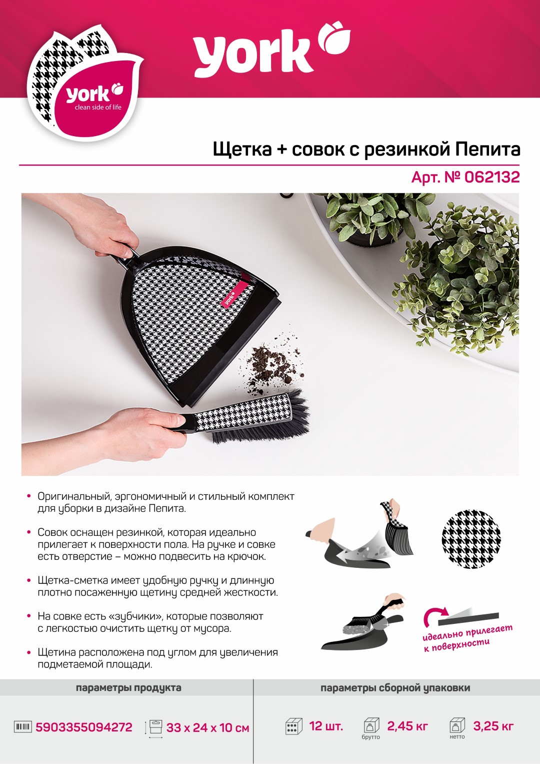 - Щётка + совок YORK СТАЙЛ ПЕПИТА с резинкой 062132 предназначена для уборки помещений.