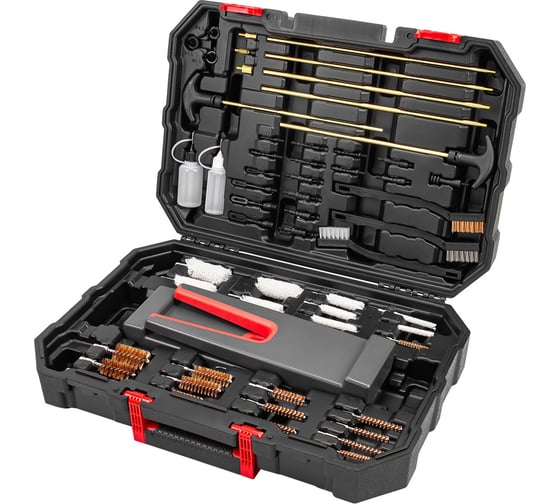 109 предметов в комплекте. Полная комплектация покрывает множество задач по очистке каналов. Различные диаметры и длины щеток позволяют работать с отверстиями любого размера. Шомполы с разборной конструкцией удобны для хранения.