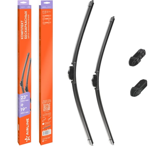 Щетки стеклоочистителя AIRLINE 580/480мм (23/19) бескаркасные для а/м Haval F7 (24-), F7x (24-), Changan CS85 (19-), Evolute i-Space (23-), комплект, 2 типа адаптеров AWBOR001