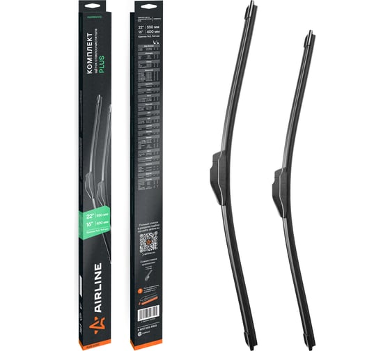 Щетки стеклоочистителя AIRLINE комплект (2 шт) 550/400мм (22/16) бескаркасные PLUS с креплением Крючок 9x3, 9x4 мм AWBBN002