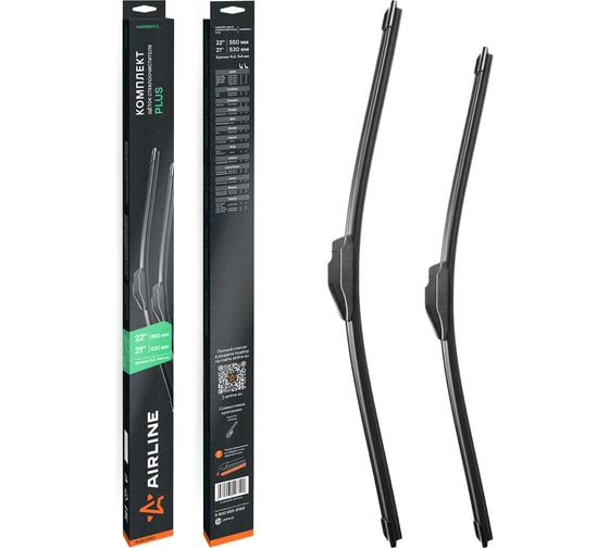 Щетки стеклоочистителя AIRLINE комплект (2 шт) 550/530мм (22/21) бескаркасные PLUS с креплением Крючок 9x3, 9x4 мм AWBBN003