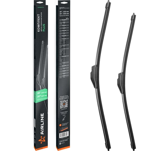Щетки стеклоочистителя AIRLINE комплект (2 шт) 600/500мм (24/20) бескаркасные PLUS с креплением Крючок 9x3, 9x4 мм AWBBN006