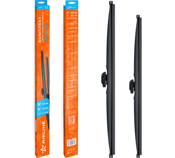 Щетки стеклоочистителя комплект AIRLINE 650/400мм (26/16) зимние с креплением Крючок 9x3, 9x4 мм, 2 штуки AWBM161