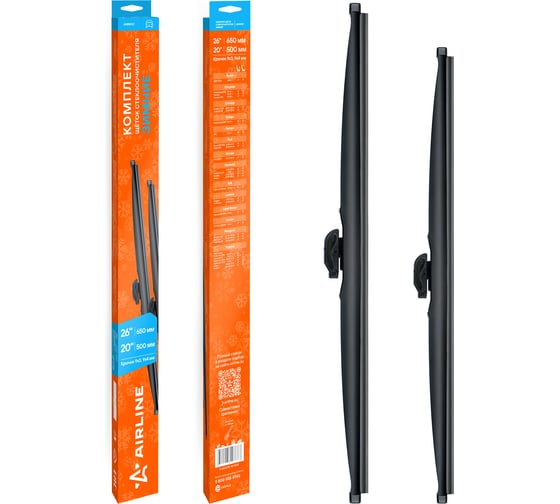 Щетки стеклоочистителя комплект AIRLINE 650/500мм (26/20) зимние с креплением Крючок 9x3, 9x4 мм, 2 штуки AWBM167