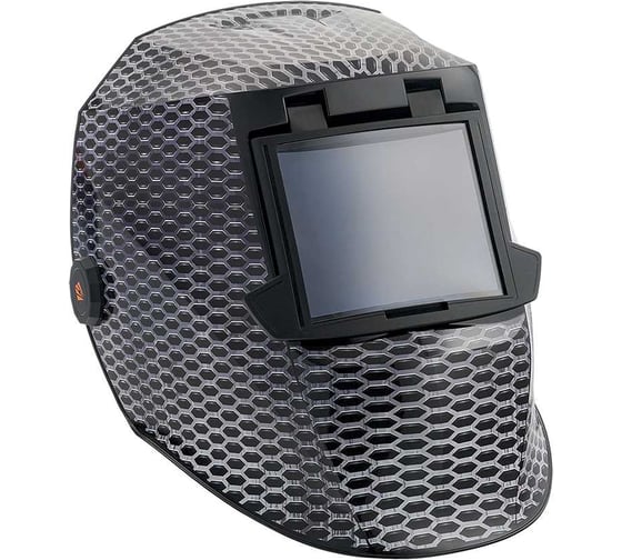 - Поликарбонатная защитная пластина защищает лицо и глаза от искр при поднятом экране.
