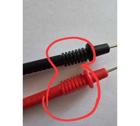 На щупах в области хвата пальцами с трех сторон выполнены плоские площадки, щупы удобно держать пальцами при измерениях. Защитные колпачки наконечников мягкие, выполнены из силикона.
