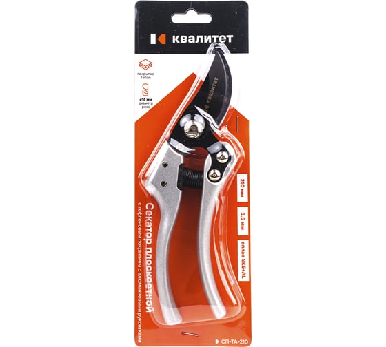Секатор плоскостной Квалитет с тефлоновым покрытием с алюминиевыми рукоятками 210мм СП-ТА-210 00006705553