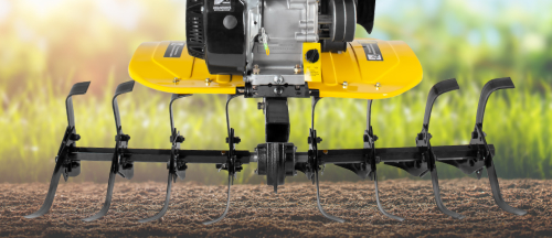 Большая ширина вспашки (100 см) позволяет быстро обработать участок. Диаметр фрез - 30 см, глубина обработки регулируется сошником.