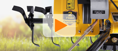 Модель имеет 3 передачи: 2 вперед, 1 назад. Наличие заднего хода не даст застрять агрегату в грунте. Мотоблок оборудован защитным щитком, предохраняющим оператора и бензодвигатель. Прорезиненные рукоятки создают комфорт при работе.