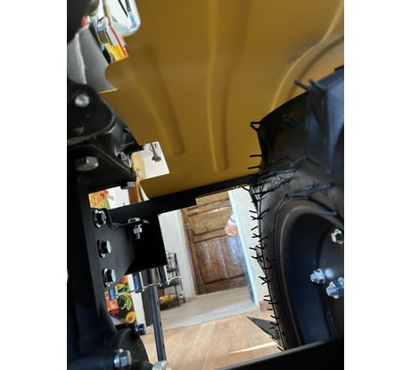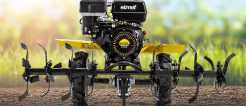 Мотоблок HUTER MK-9500P оснащен закаленными фрезами диаметром 32 см. Они способны обрабатывать практически любую почву, в том числе и целину. За один проход агрегат обработает полосу шириной 115 см, при необходимости ширину обработки можно уменьшить. Сошник позволяет регулировать глубину обработки в зависимости от типа и характеристик грунта.