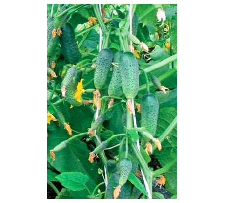 Раннеспелый гибрид с пучковым заложением завязей. Закладывает от 4 до 6 огурчиков в узле! Первые плоды снимают на 46-50 день после всходов. Подходит для открытого и защищенного грунта. Зеленцы длиной 8-10 см, диаметром 3-3,5 см. Очень сочные и хрустящие, они никогда не бывают горькими. Очень хороши для засолки и маринования. Гибрид устойчив к МР, кладоспориозу, ВОМ. Урожайность в теплице – 9-10 кг/м2.