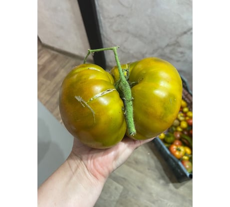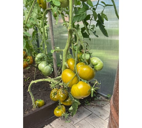 Крупноплодный сорт среднего срока созревания, с длительной отдачей урожая. Производит неизгладимое впечатление своим неповторимым вкусом и цветом. От всходов до первого сбора плодов 110-115 дней. Подходит для открытого грунта и теплиц. Растения индетерминантные, высотой 1,5 м и более. Первые плоды достигают веса 600 г, остальные – 250-350 г, которые при созревании приобретают оливковый цвет. Томаты с тонкой кожицей, не растрескиваются, содержат в меру кислинки и сладости. Используют для салатов, соусов и переработки на томатопродукты. Сорт неприхотливый, жаростойкий, устойчив к кратковременным похолоданиям. Урожайность в теплице 10-12 кг/м2.