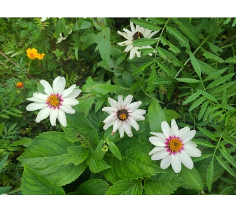 Семена были посеяны в конце апреля. Взошло только одно, причём всходило довольно долго. Растение поначалу было совсем слабым и очень медленно развивалось, поэтому вплоть до конца июня не рисковали с высадкой в открытый грунт из горшочка 0,4 л. К этому времени цинния была высотой менее 15 см, но уже имела 1 цветок (лепестки полностью белые) и ещё пару бутонов. К середине сентября растение выгляедело уже неплохо, как на фото, и только поэтому поднимаю оценку до 4. Надеюсь, собранные с цветков семена в следующем году дадут более приличный результат.