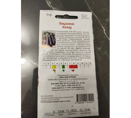 Вопросы и ответы о Агрони Баклажан Алмаз, 0,3г ц/п 1444