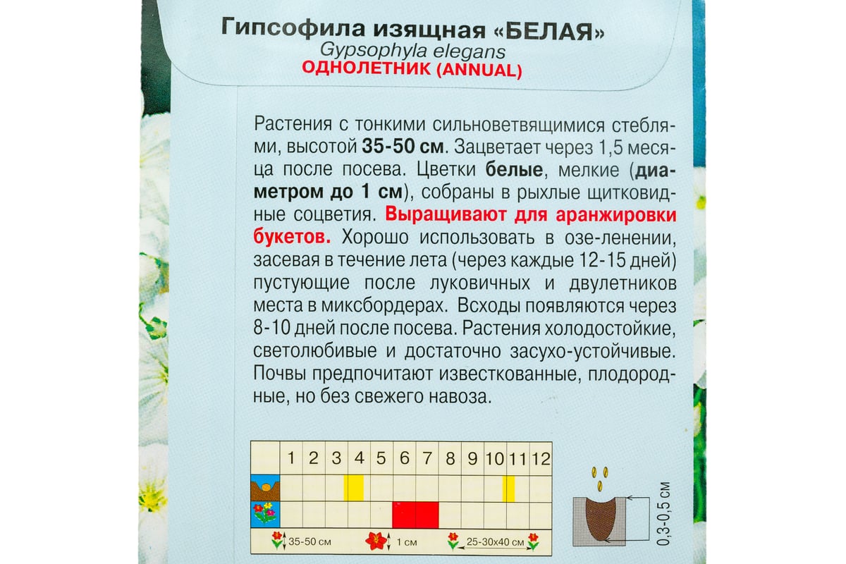 Семена АРТИКУЛ Гипсофила однолетняя, белая, 0.3 г, евро, h=35-50 см, d=1 см 4607089741525