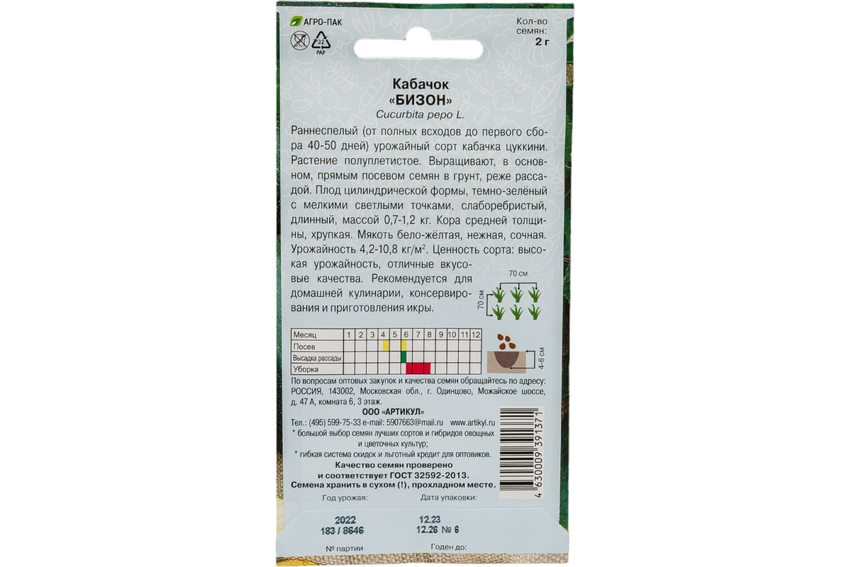 Семена АРТИКУЛ Кабачок Бизон 2 г + евро 4630009391371