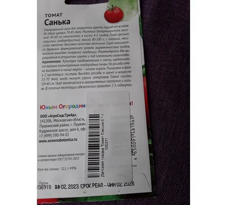 Отзывы о семенах Детская грядка Томат Санька 0.1 г 120311