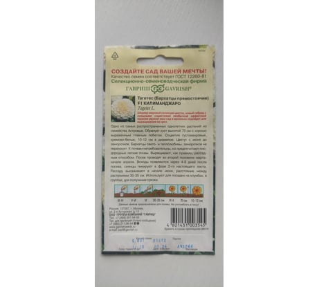 Технические характеристики ГАВРИШ Бархатцы Килиманджаро F1 Тагетес 003358