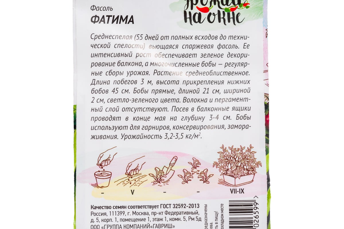 Семена ГАВРИШ Фасоль Фатима 5 г Урожай на окне 1999945225