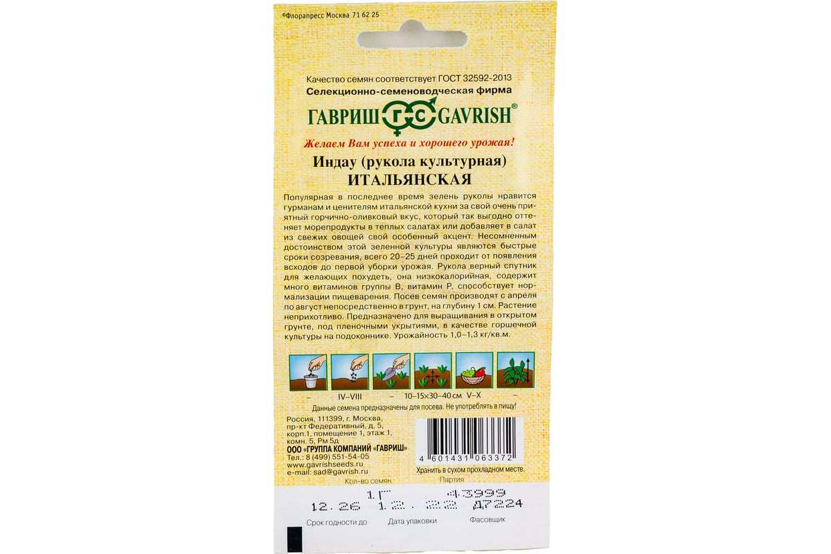 Технические характеристики ГАВРИШ Индау Итальянская Рукола 191223843