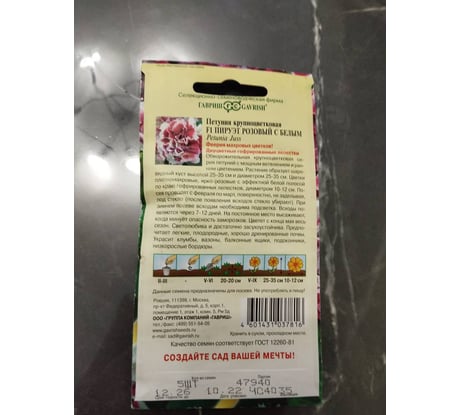 Семена ГАВРИШ Петуния Пируэт розовый с белым махр. 5 шт., Элитная клумба 10005858