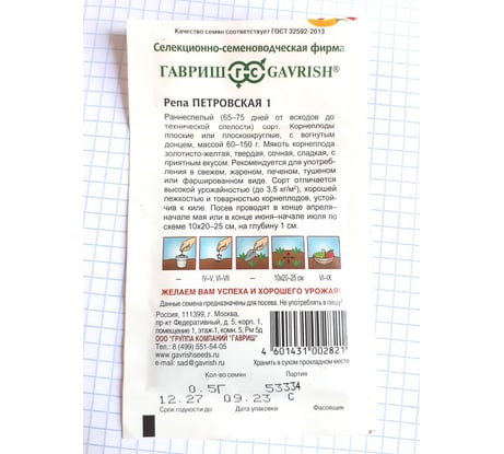 Семена ГАВРИШ Репа Петровская 1 0.5 г 00001971