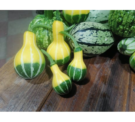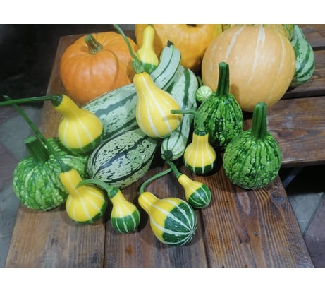 В наборе 4 сорта тыквы, все разные и все невероятно красивые: Лампочка, Жаба, Арбузик и Кабачок. Имеют большую силу роста. Плоды вызывают восторг у всех, кто их видит. На вкус горькие, но для еды полно других сортов.