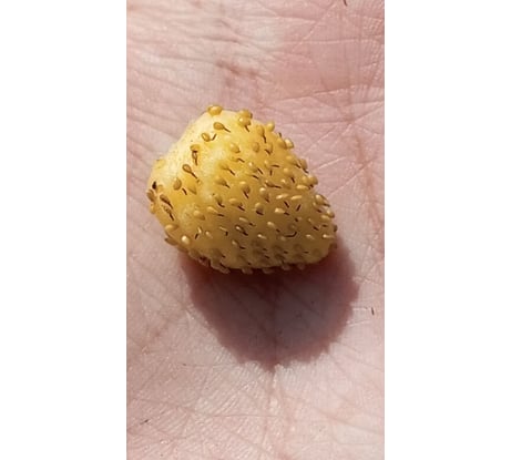 Ремонтантная земляника. Ягоды желтого цвета, среднего размера, яйцевидной формы, очень ароматные, сладкие, великолепного вкуса. Вкуснее и ароматнее красноплодных сортов. Совершенно не образует усов. Формирует растения высотой 25-30 см. Отлично растет в любом регионе. Предпочитает открытые, солнечные участки. Сорт урожайный, зимостойкий. Может выращиваться как декоративная горшечная культура. Посев земляники следует производить в марте-апреле. Семена смешивают с песком и равномерно распределяют по увлажненной ровной поверхности. Всходы появляются в течение 30 дней. Пикируют два раза. Первый раз в фазе 1-2 настоящих листьев пикируют в горшочки по схеме 5х5 см, при последующей пересадке площадь питания увеличивают (схема 10x10 см). После появления 6 настоящих листьев высаживают в грунт с расстоянием между рядами 50 см, между растениями 25-30 см. Сбор урожая начинают с июля.