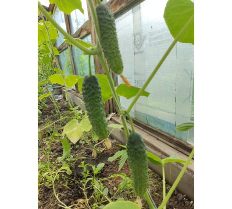 Огурцы с колючими шипами. Не люблю такие, но при дегустации они оказались вкуснее, чем рядом растущие огурцы с плодами без шипов.